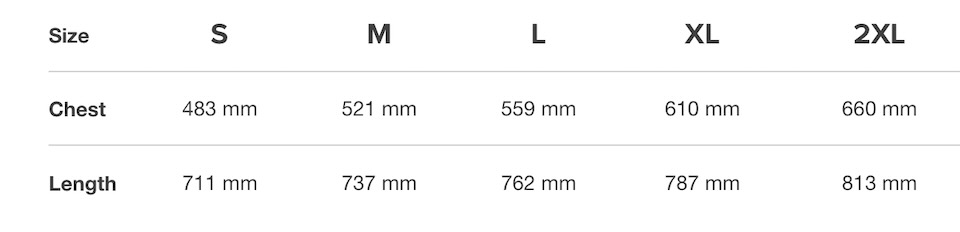 See chart below, which gives size across chest.