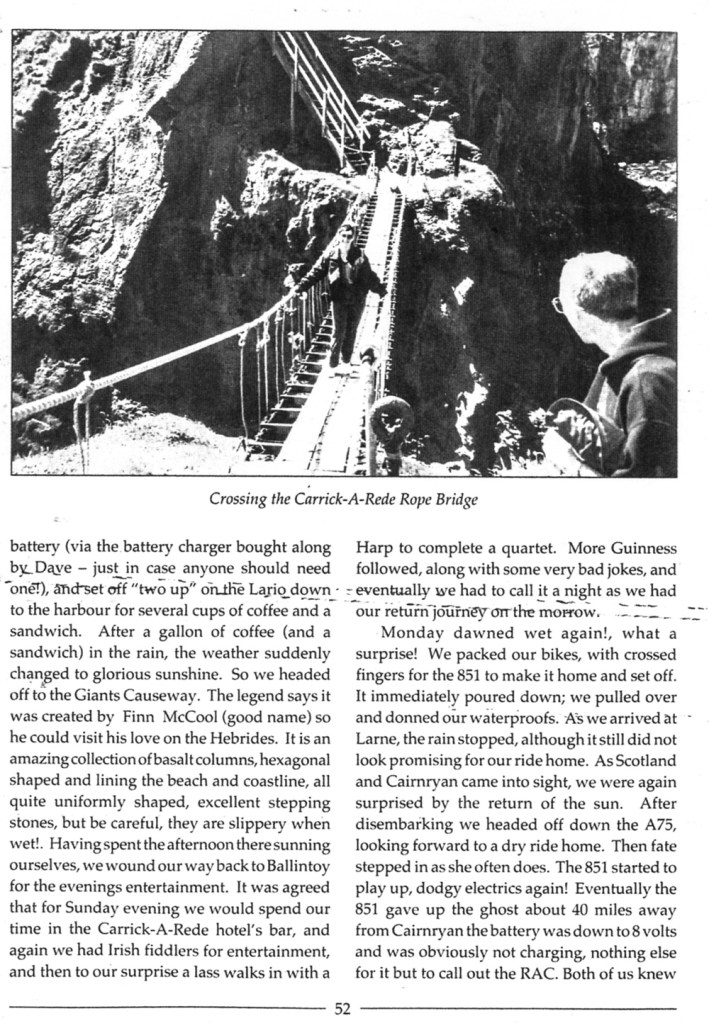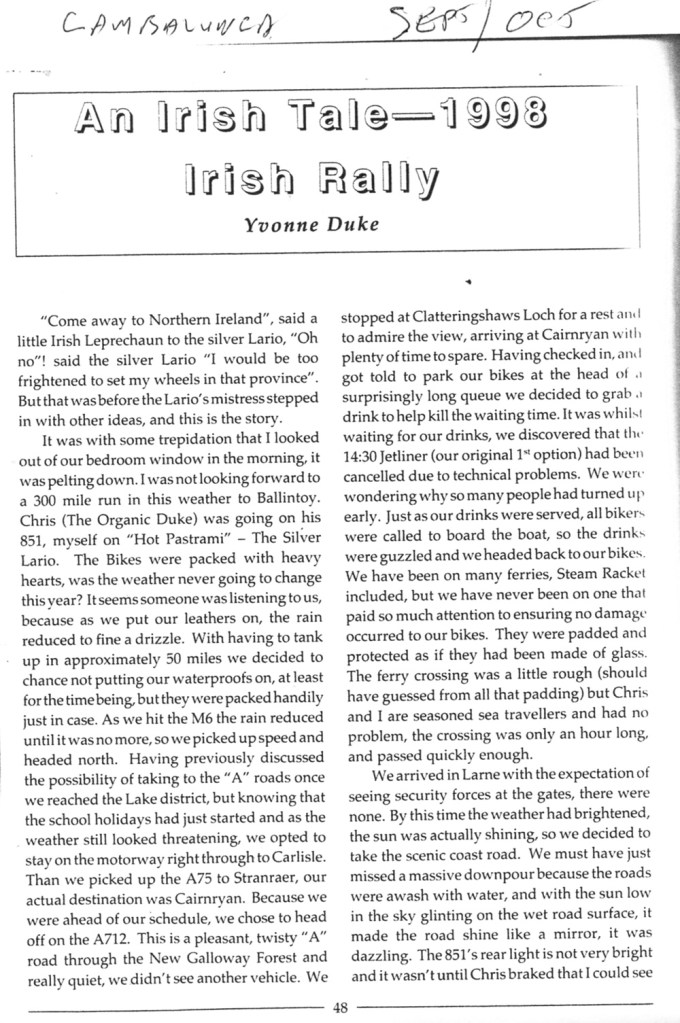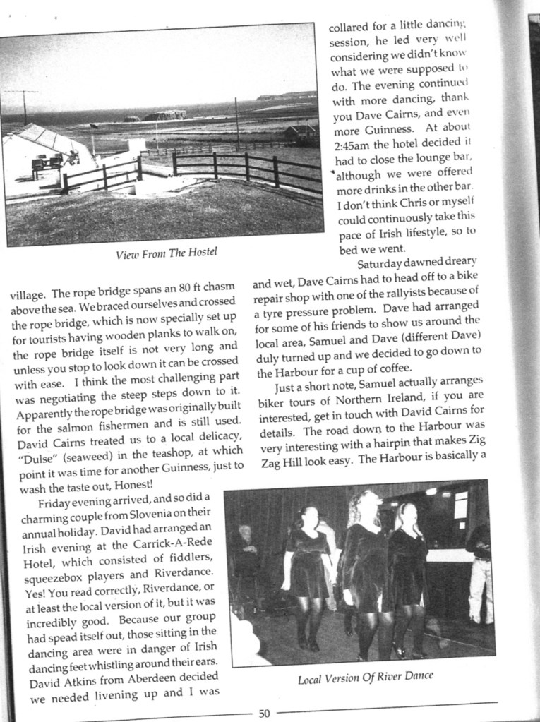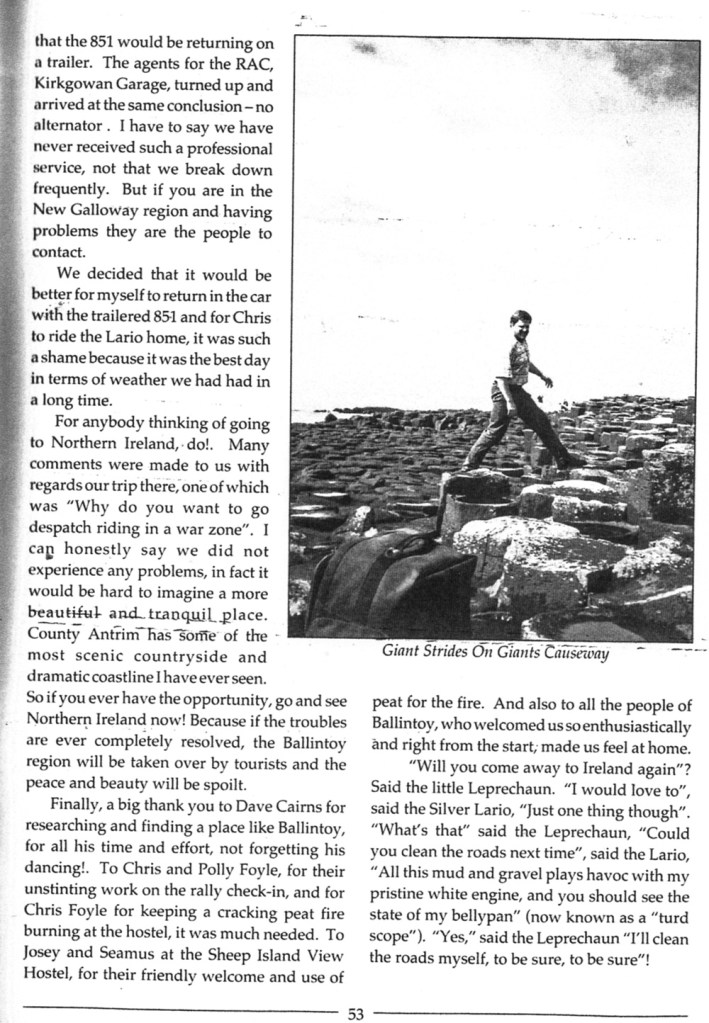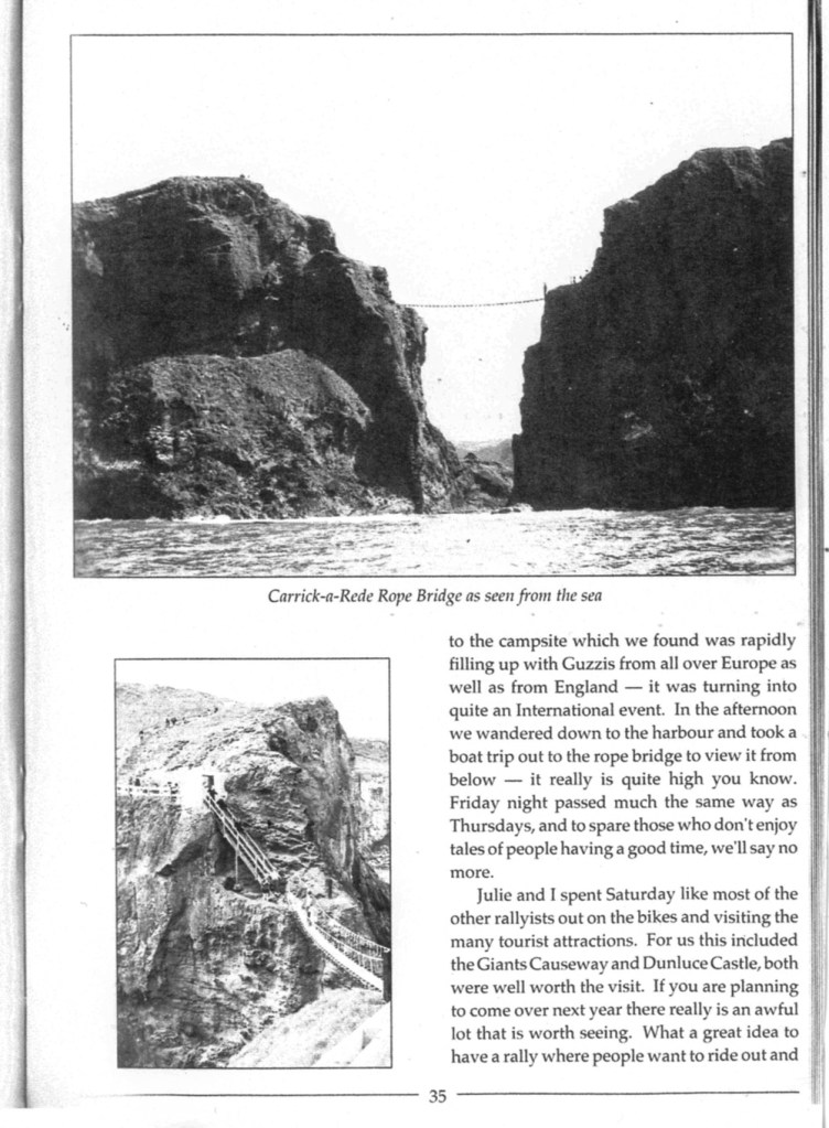 When organising a Moto Guzzi Ulster Rally 2 at Ballintoy, north coast, in 2010, I discovered there had been Moto Guzzi Club GB Irish Rallies at this very location in 1997 and 1998, organised by Davy Cairns, or in conjunction with DC. Bob Berwick from Great Harwood sent me these articles from Gambalunga.