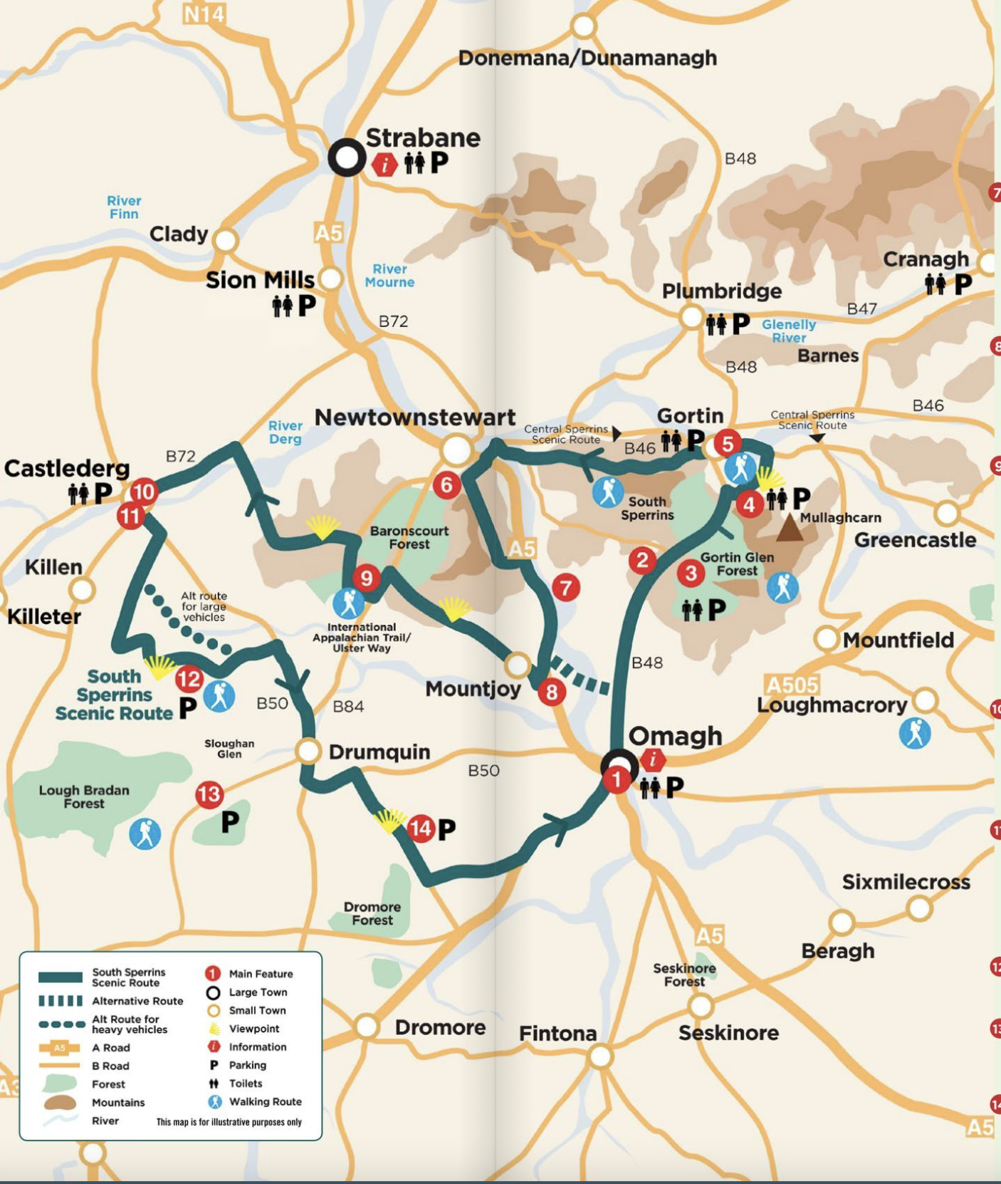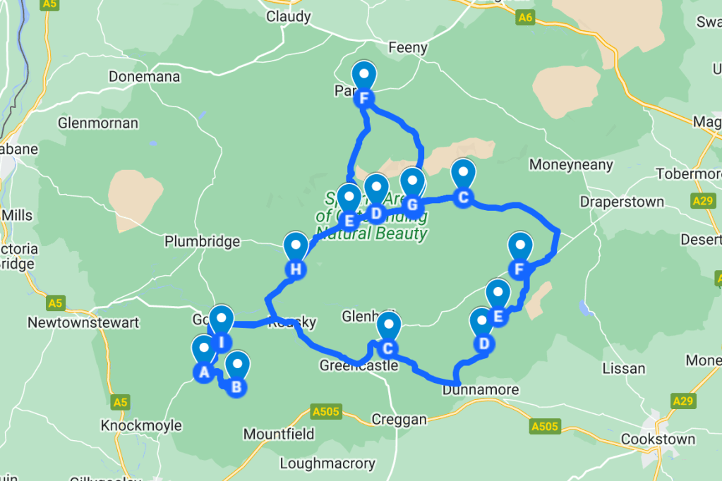 Routes 1 – 4: The North, Central, East and South Sperrins regions.