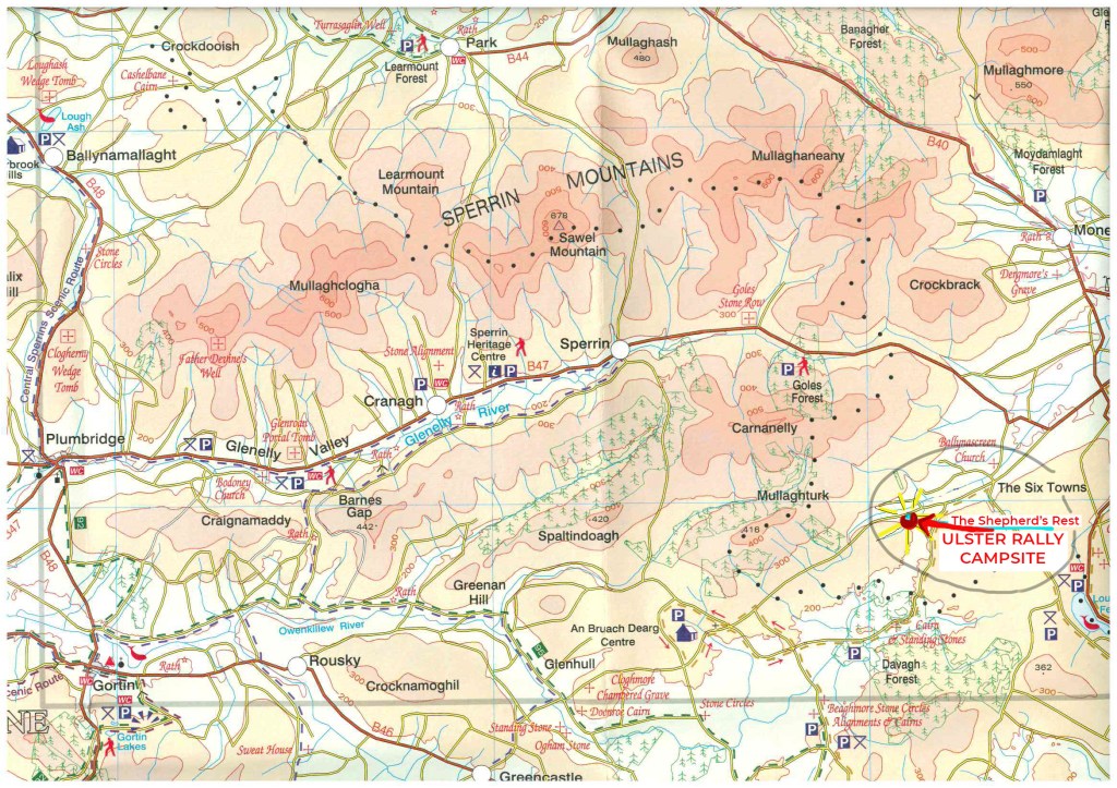 220 Sixtowns Road, The Shepherd’s Rest Pub is the Ulster Rally campsite venue.