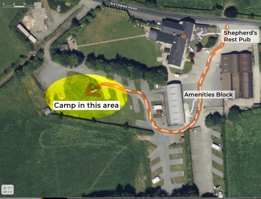 Camping pitches at the Shepherd’s Rest for the three nights. Off-site accommodation is available nearby, some suggestions below.